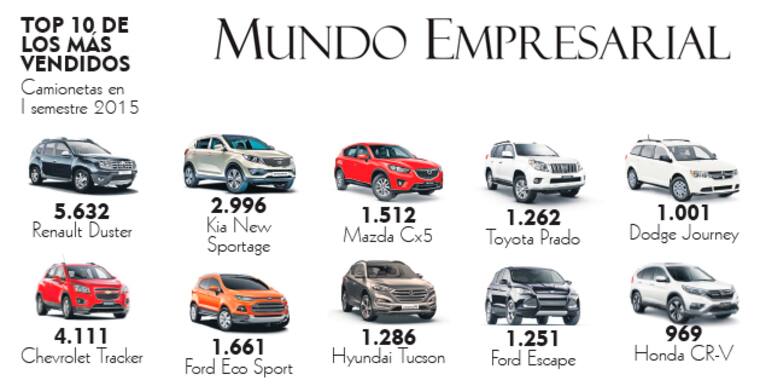 MODELOS EN EL MERCADO. El mercado colombiano es competitivo: al menos 50 marcas de vehículos se venden con algún nivel importante, pues en realidad existen alrededor de 100 marcas comercializadas en el país. Expertos del gremio indican que Chevrolet y Renault seguirán repuntando en ventas masivas, mientras que Hyundai, que en ventas de 2015 estuvo en el top cinco, tendrá dificultades por su cambio de comercializadora.