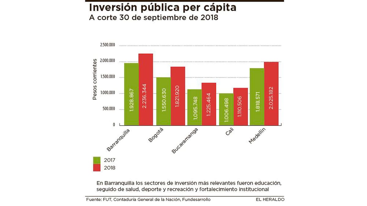 La Cámara de Comercio de Barranquilla (CCB) y Fundesarrollo destacaron ayer que la inversión per cápita más alta del país es la de Barranquilla con $2,2 millones.