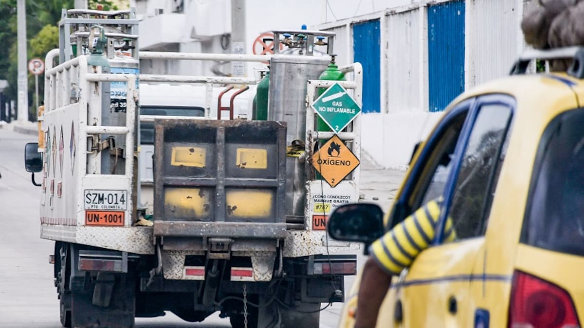 De acuerdo con la Cámara de Gases industriales y medicinales de la Asociación Nacioanal de Empresarios (ANDI), cerca del 45% de la flota de vehículos que transporta los cilindros y concentradores de oxígeno se encuentra retenida en distintos lugares del país.