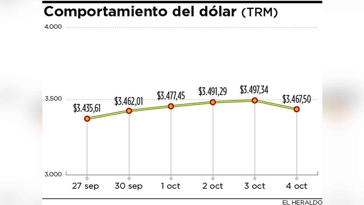 El precio promedio registrado fue de $3.467,63 y de cierre de $3.450, lo que indica que el peso presentó una recuperación cercana al 1,3% frente al dólar.