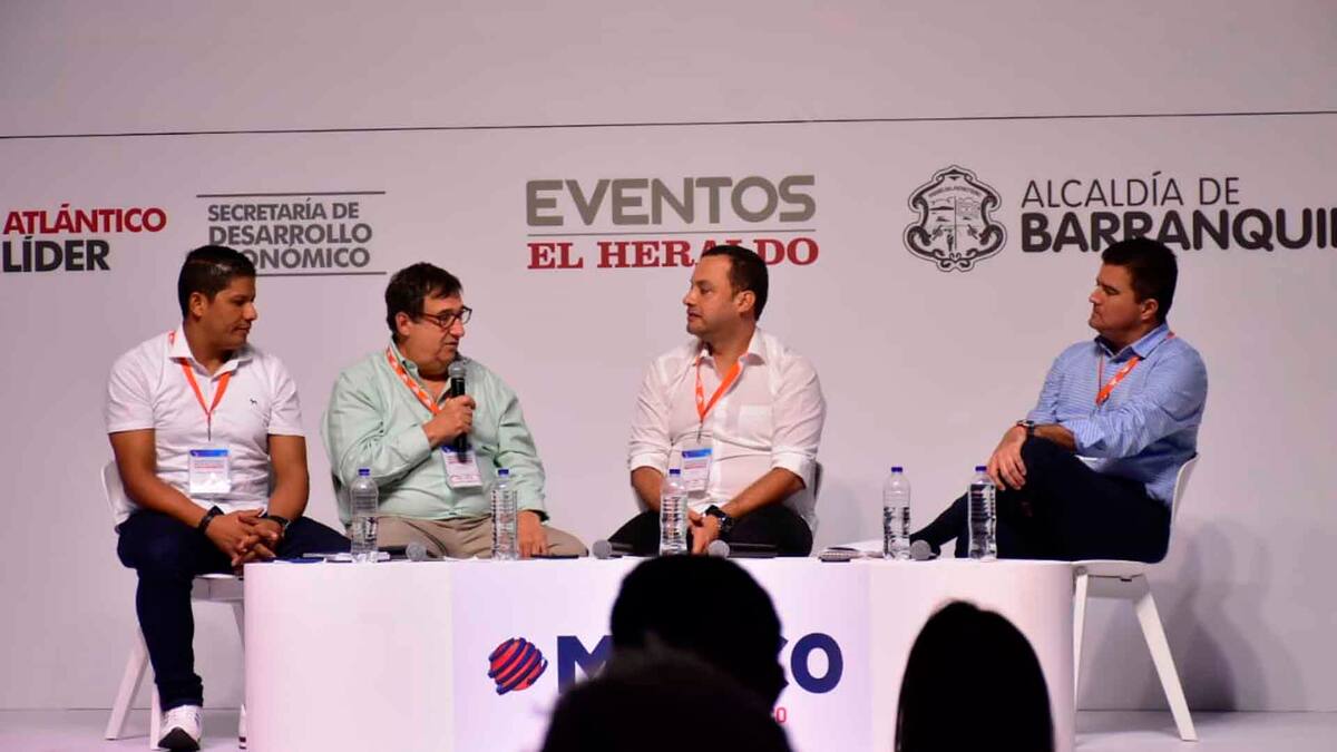 Los alcaldes electos Rummenigge Monsalve, de Malambo, José Vargas, de Galapa, Rodolfo Ucrós Rosales, de Soledad participaron en el panel sobre desarrollo económico moderado por Adolfo Meisel, rector de la Universidad del Norte.