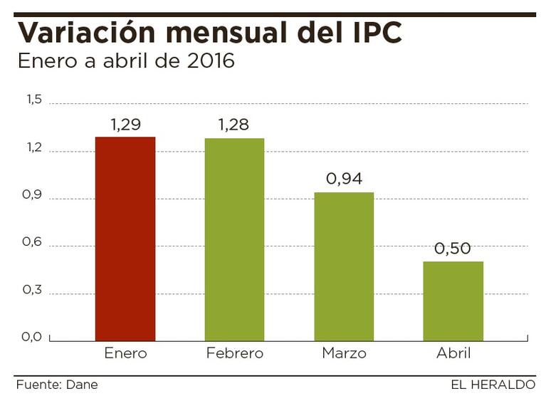 El Dane informó que entre mayo de 2015 y abril de 2016 la inflación fue 7,93%. De mayo de 2014 a abril 2015 fue de 4,64%.