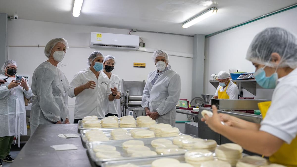 Deditos integrales, arepitas de yuca y de cayeye elaborados en Barranquilla deleitaron con su sabor caribe al embajador de Estados Unidos en Colombia, Philip S. Goldberg, durante su visita a la planta de la empresa de alimentos saludables Joyfuds.