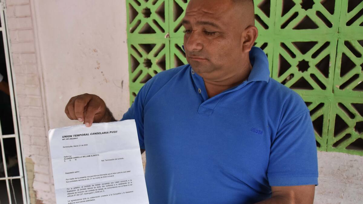 Según cuenta Algarín, pasada la jornada laboral, representantes de Unión Temporal Candelaria, una bolsa de empleo, le entregaron a él y a otros 11 compañeros una carta en la que les oficializan la decisión.