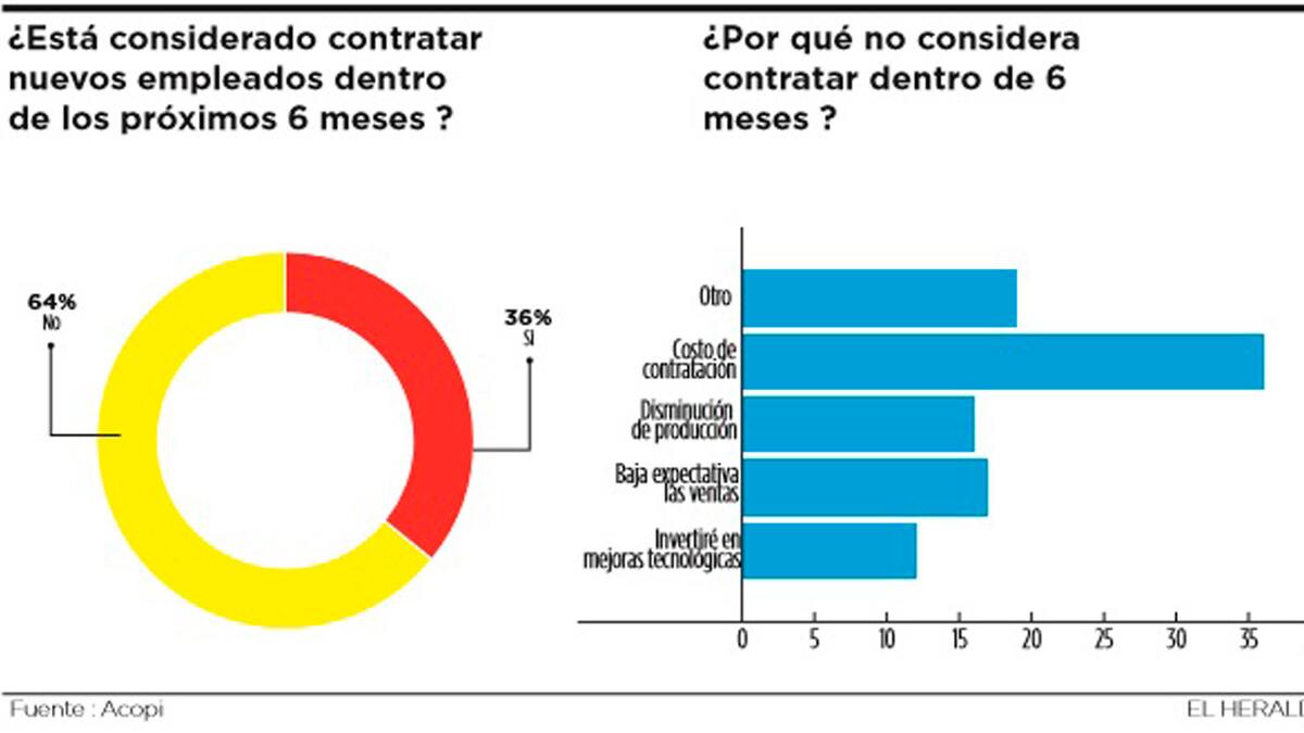 Quintero dice que en el Congreso se tramitan al menos 14 proyectos de ley relacionados con temas laborales y que el contenido de estas iniciativas genera incertidumbre en el sector empresarial, lo que lleva a que el 74% de los consultados por Acopi en su encuesta empresarial asegura no estar pensando en vincular nuevos trabajadores.