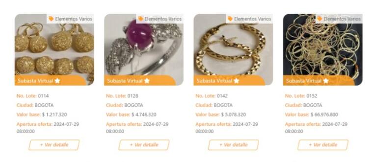 De acuerdo con la Dian, en agosto se realizará una subasta de joyería, metales preciosos y no preciosos. En septiembre se venderán vehículos y en octubre será tanto de joyería como de vehículos.