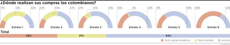 De acuerdo con Fenalco, hay cerca de 200 mil tiendas de barrio en el país, las cuales venden el 60% de las categorías de los alimentos y otros productos básicos de la canasta familiar. En su mayoría atiende a los estratos 1, 2 y 3, que constituyen más del 80% de la población. También atienden poblaciones de estratos más altos, aunque estos suelen utilizar otros canales de distribución.