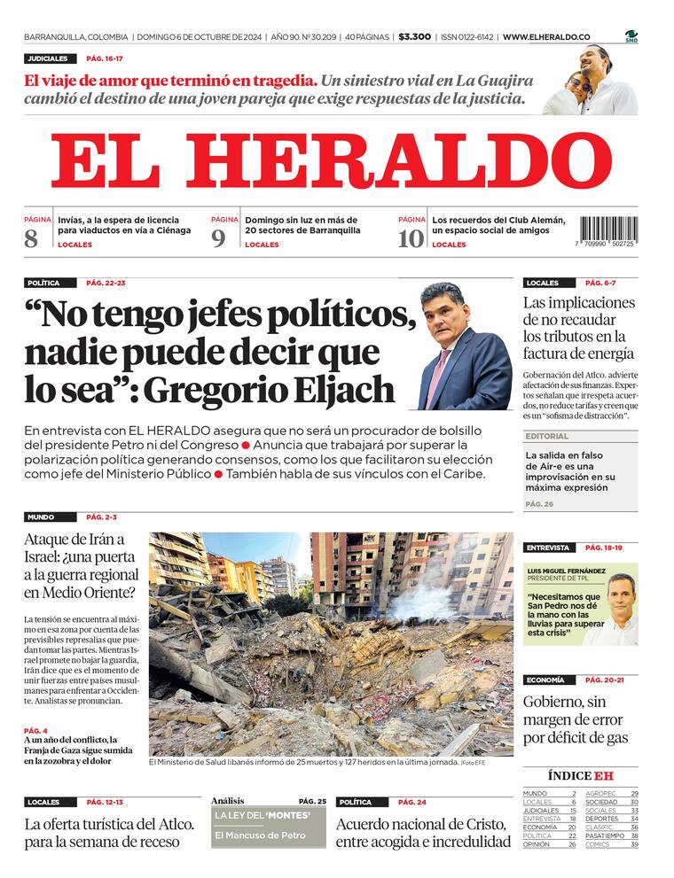 ContáctenosEdición impresa del domingo 6 de octubre de 2024.
