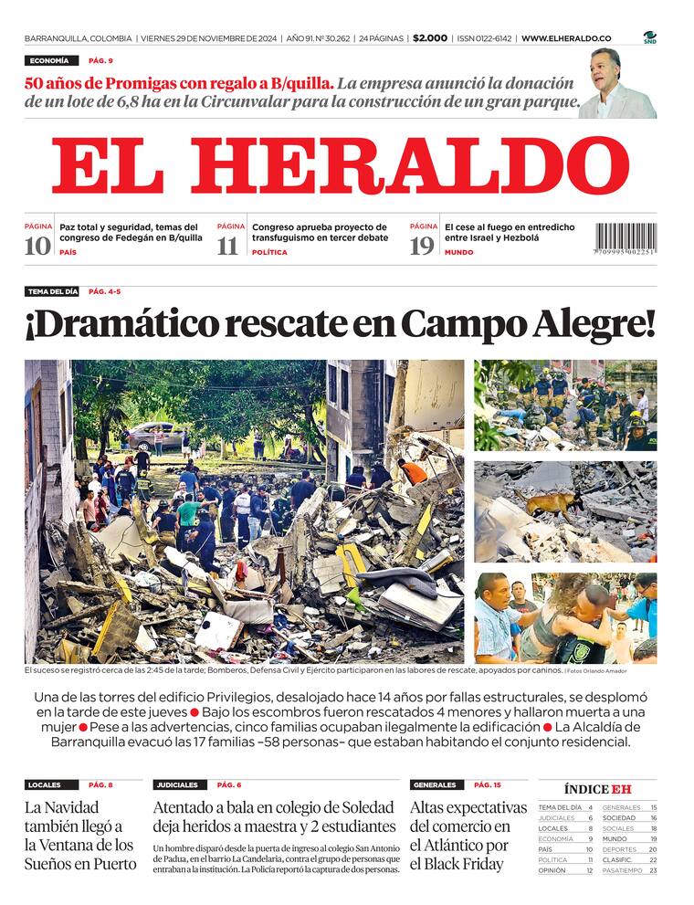 ContáctenosEdición impresa del viernes 29 de noviembre de 2024.