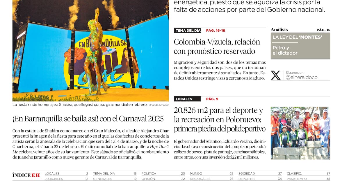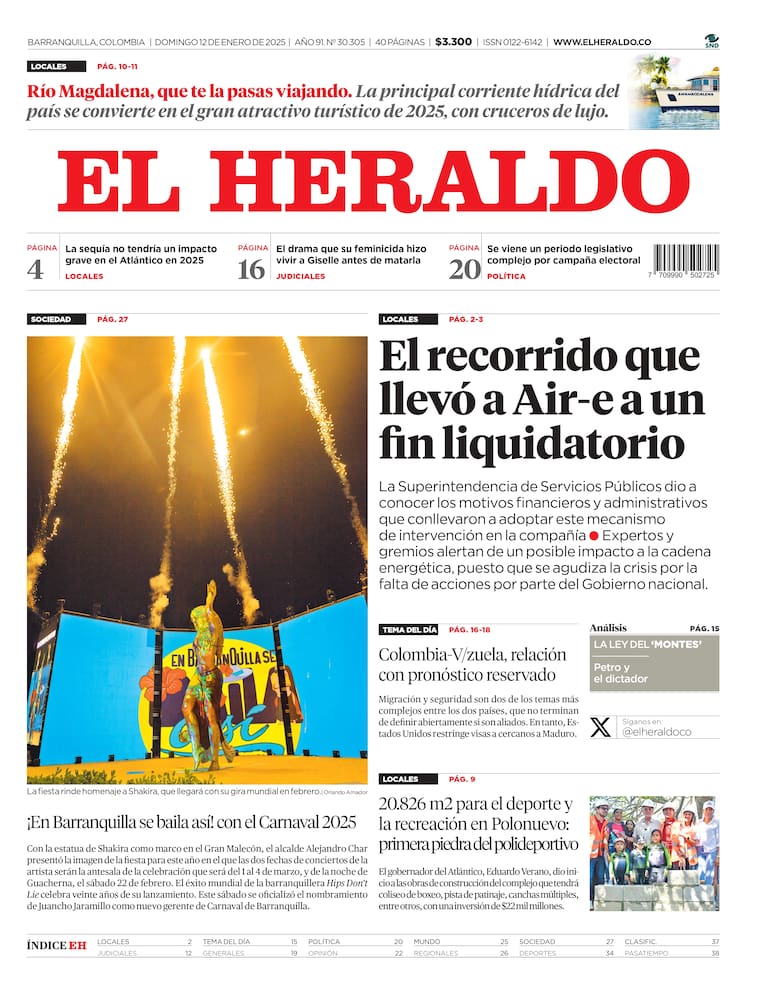 ContáctenosEdición impresa del domingo 12 de enero de 2025.