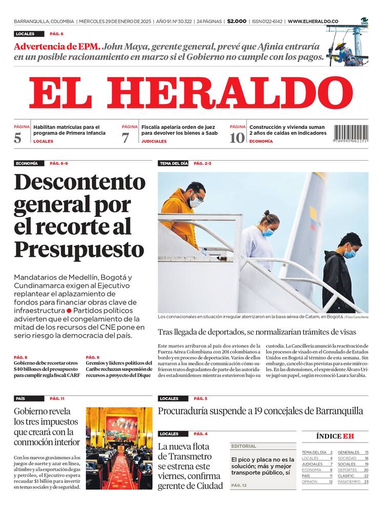 ContáctenosPortada de EL HERALDO del miércoles 29 de enero.