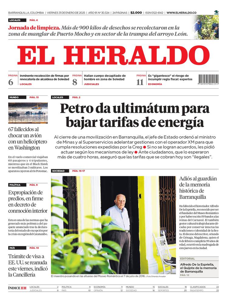 ContáctenosPortada de EL HERALDO del viernes 31 de enero de 2025.
