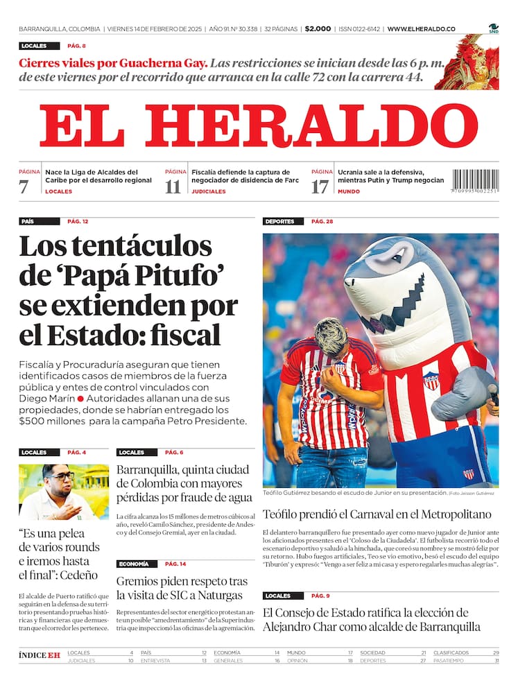 ContáctenosEdición impresa del viernes 14 de febrero de 2025.