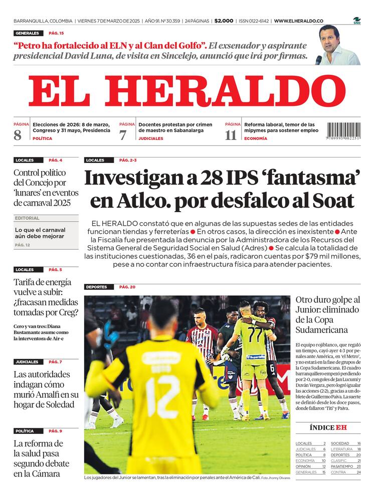 ContáctenosPortada y contraportada del viernes 7 de marzo de 2025.