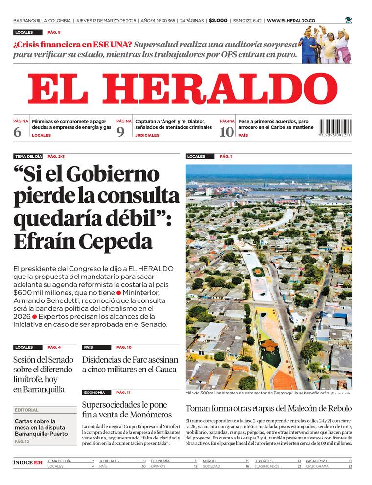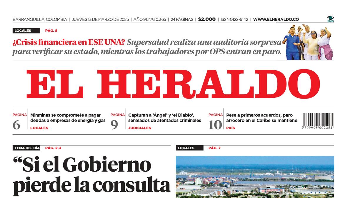 ContáctenosEdición impresa del jueves 13 de marzo de 2025.