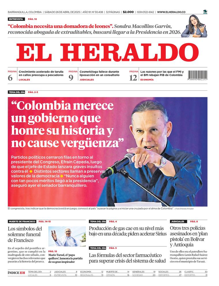 ContáctenosEdición impresa del sábado 26 de abril de 2025.