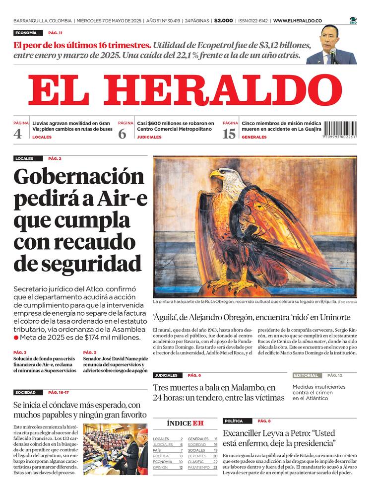 ContáctenosPortada y contraportada de la edición impresa del miércoles 7 de mayo de 2025.