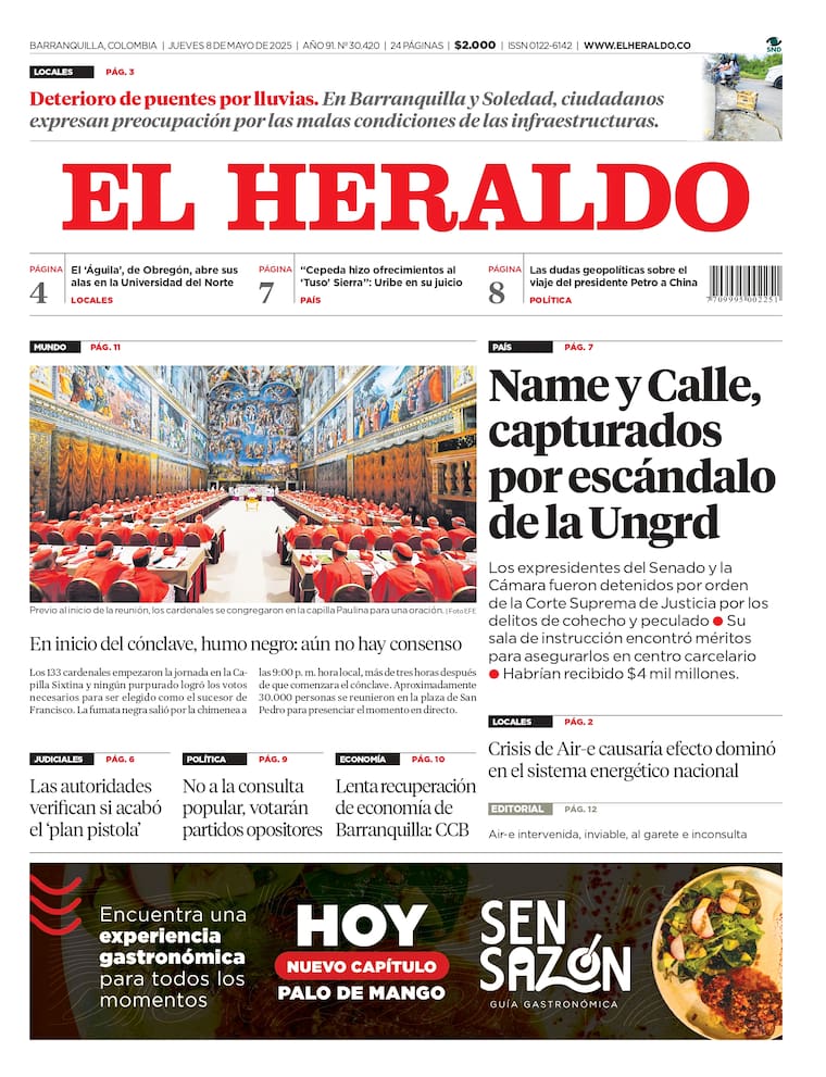 ContáctenosEdición impresa del jueves 8 de mayo de 2025.