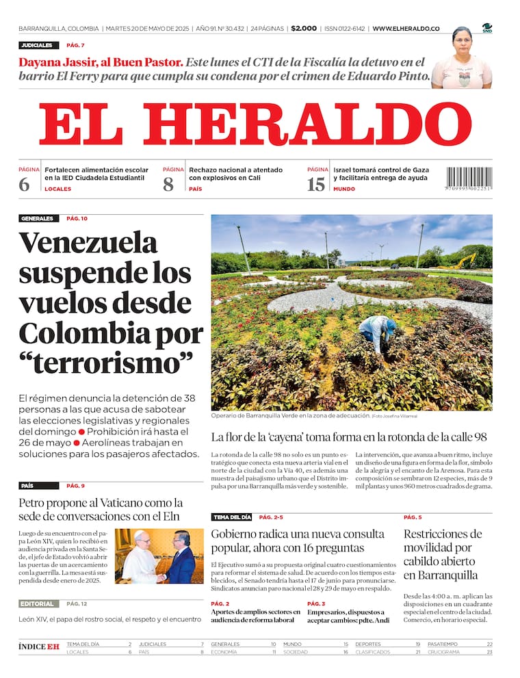 ContáctenosPortada y contraportada del martes 20 del mayo de 2025.