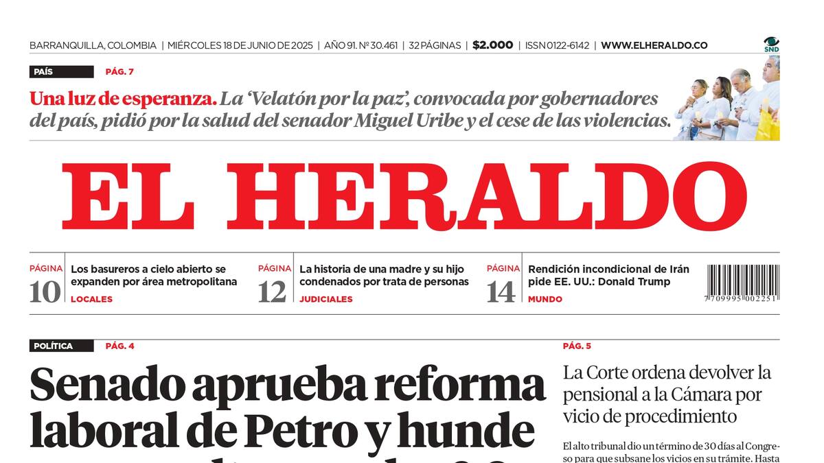 ContáctenosEdición impresa del miércoles 18 de junio de 2025.