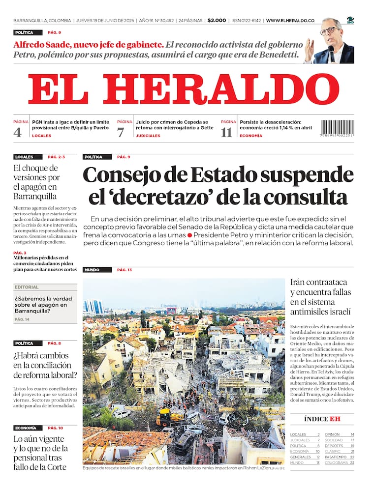 ContáctenosEdición impresa del jueves 19 de junio de 2025.