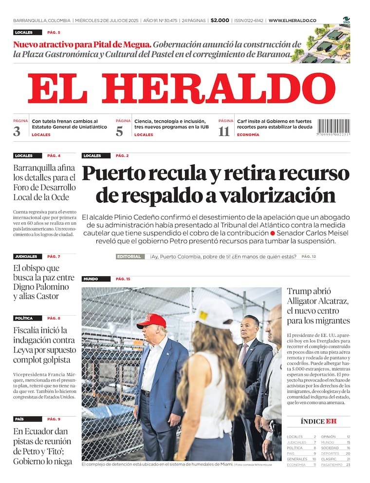 ContáctenosPortada y contraportada de EL HERALDO del miércoles 2 de julio de 2025.