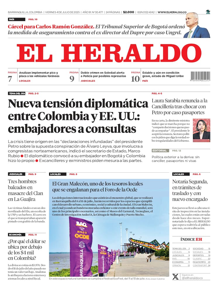 ContáctenosPortada y contraportada del viernes 4 de julio de 2025.