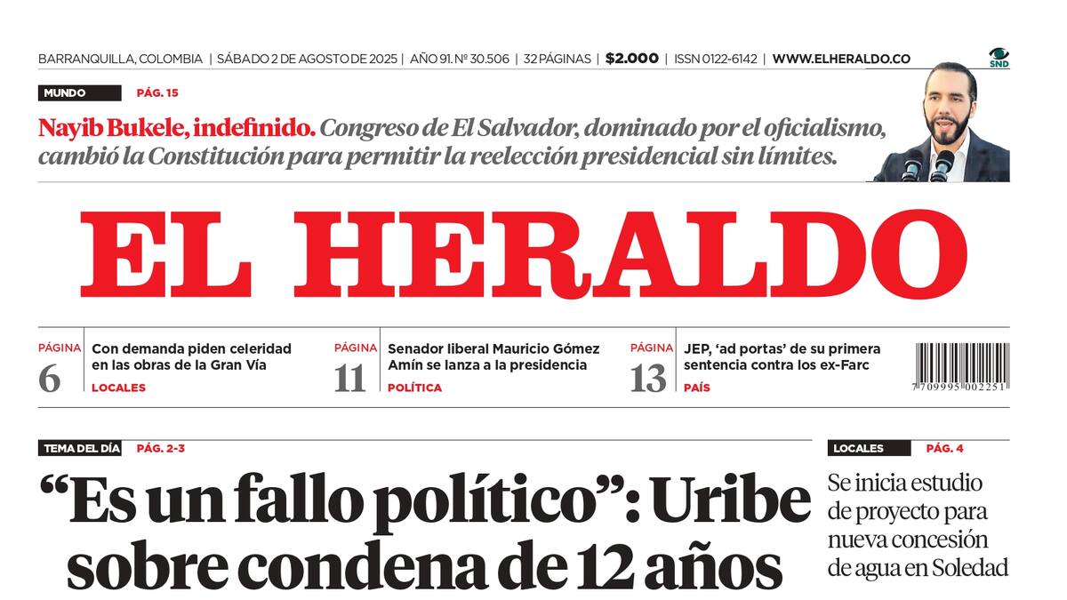 ContáctenosEdición impresa del sábado 2 de agosto de 2025.