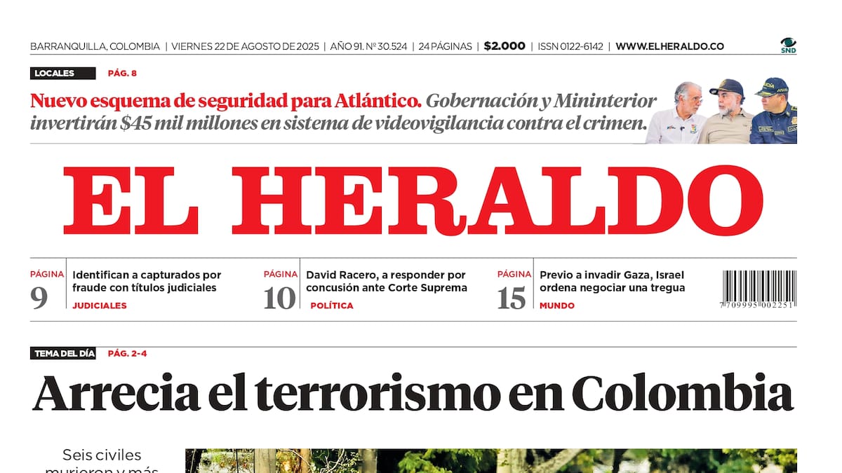 ContáctenosEdición impresa del viernes 22 de agosto de 2025.