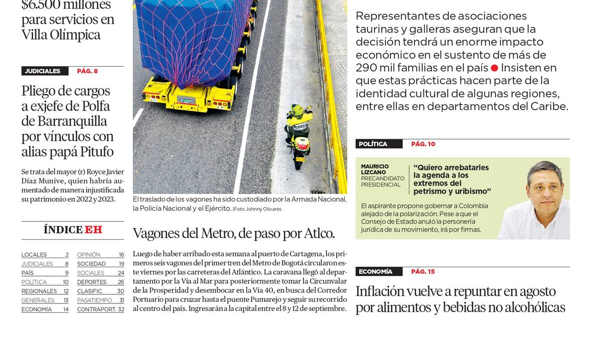 ContáctenosEdición impresa del 6 de septiembre de 2025.