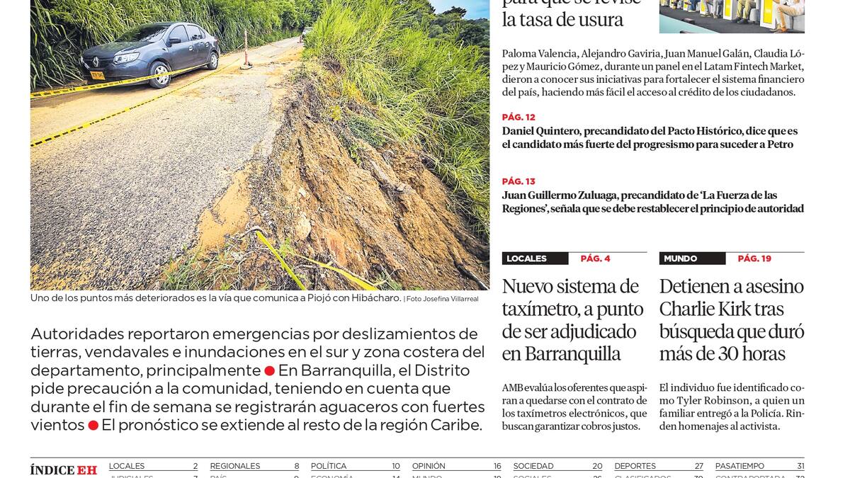 EL HERALDOContraportada del 13 de septiembre de 2025.