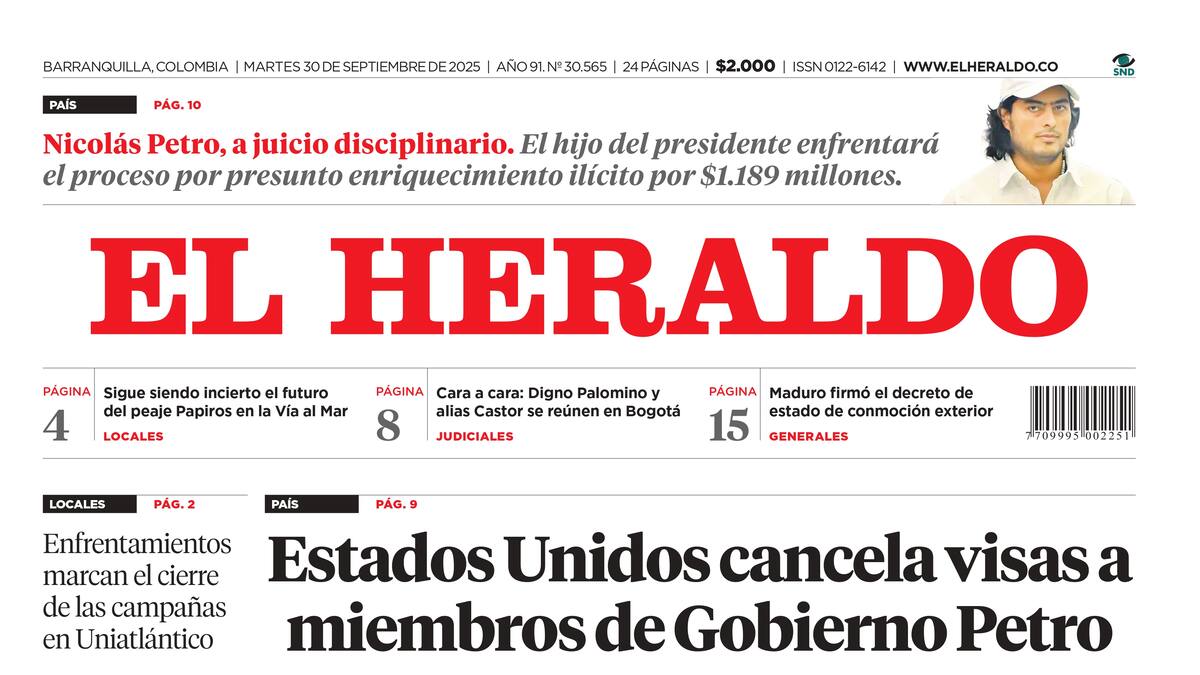 ContáctenosEdición impresa del martes 30 de septiembre de 2025.