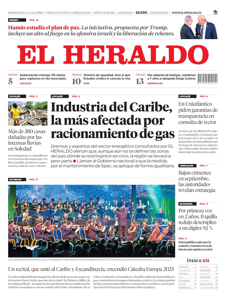 Portada del miércoles 1 de octubre de 2025.
