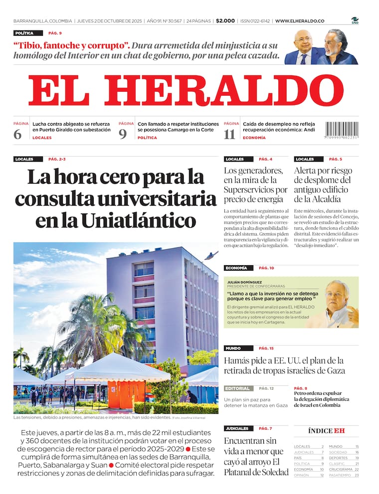 ContáctenosEdición impresa del jueves 2 de octubre de 2025.