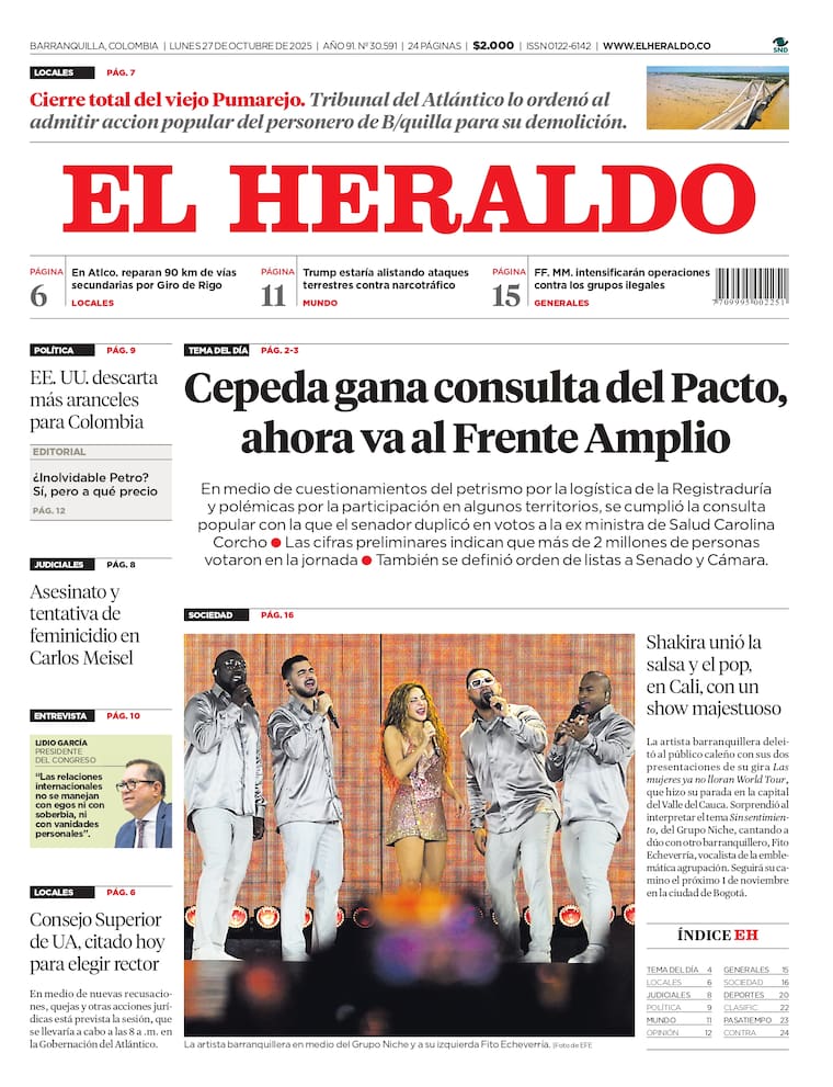 ContáctenosEdición impresa del lunes 27 de octubre de 2025.