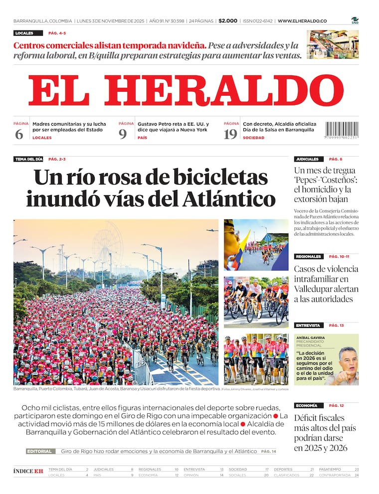 ContáctenosEdición impresa del lunes 3 de noviembre de 2025.