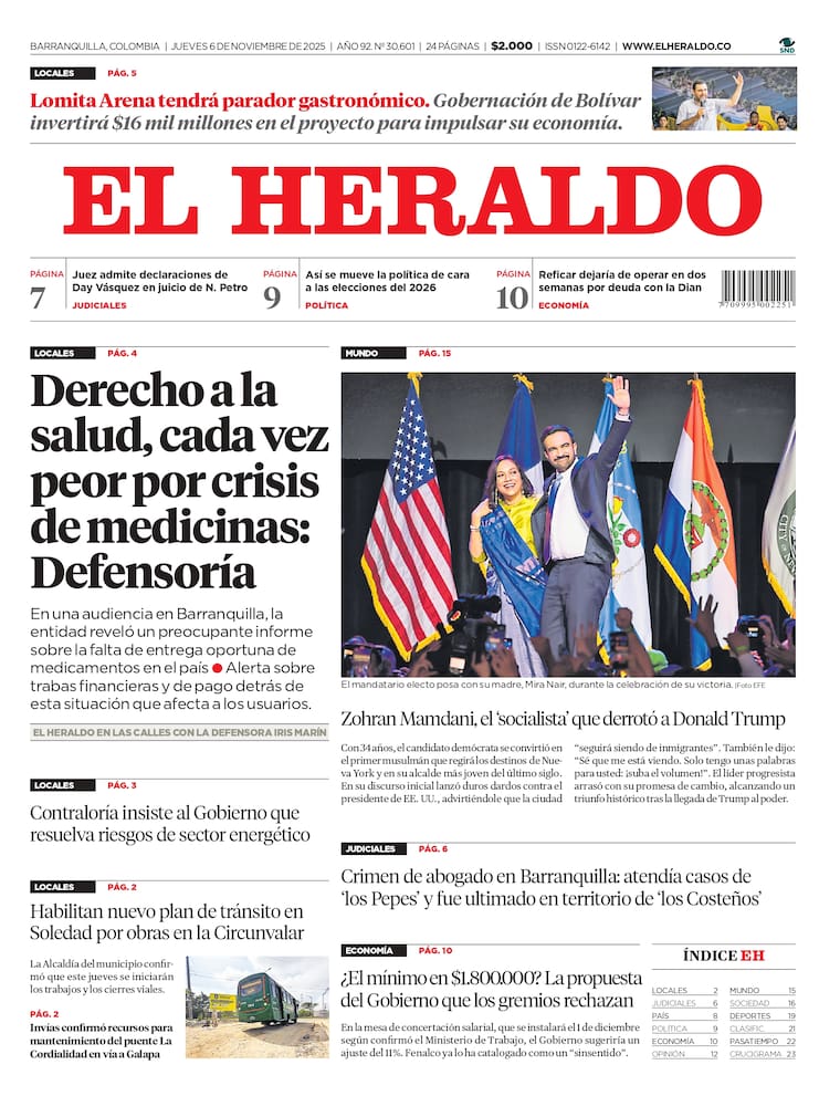 ContáctenosEdición impresa del jueves 6 de noviembre de 2025.