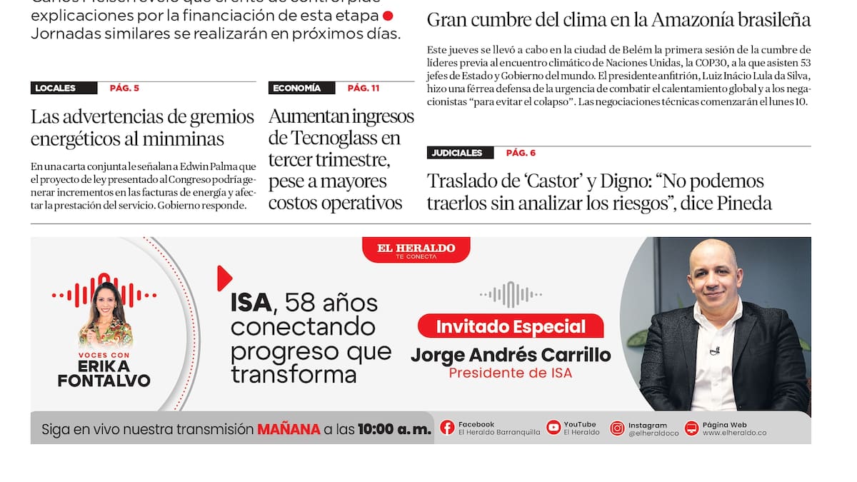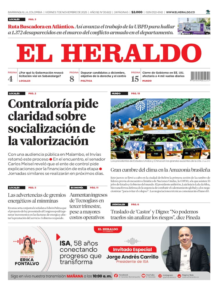 EL HERALDOContraportada del viernes 7 de noviembre de 2025.