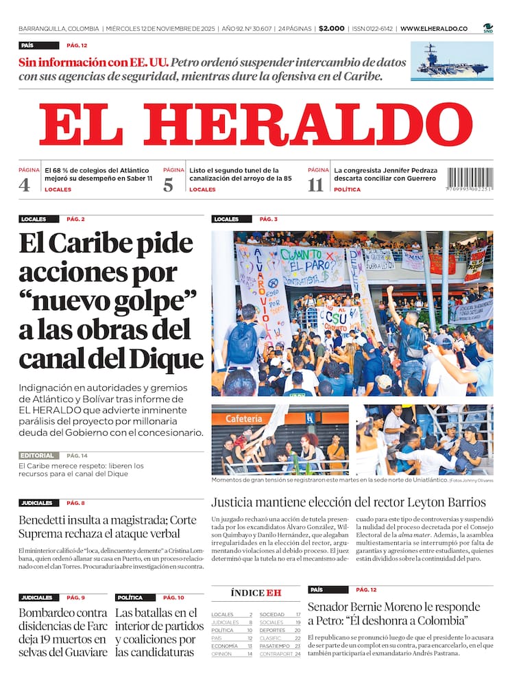 EL HERALDOContraportada del 12 de noviembre de 2025.