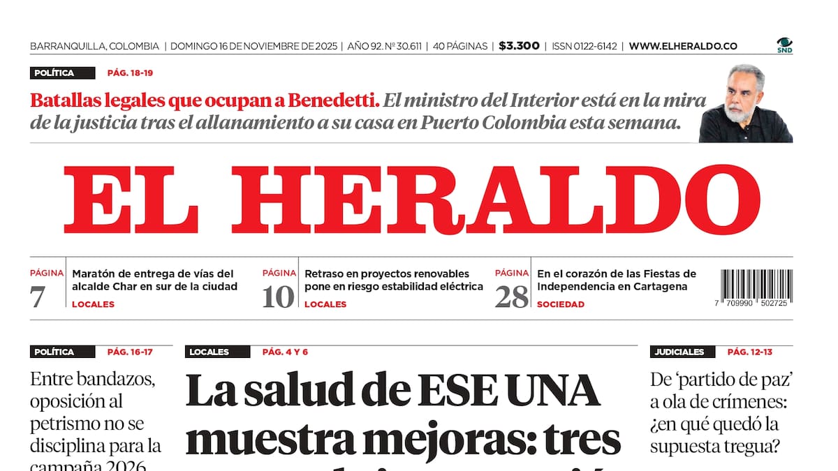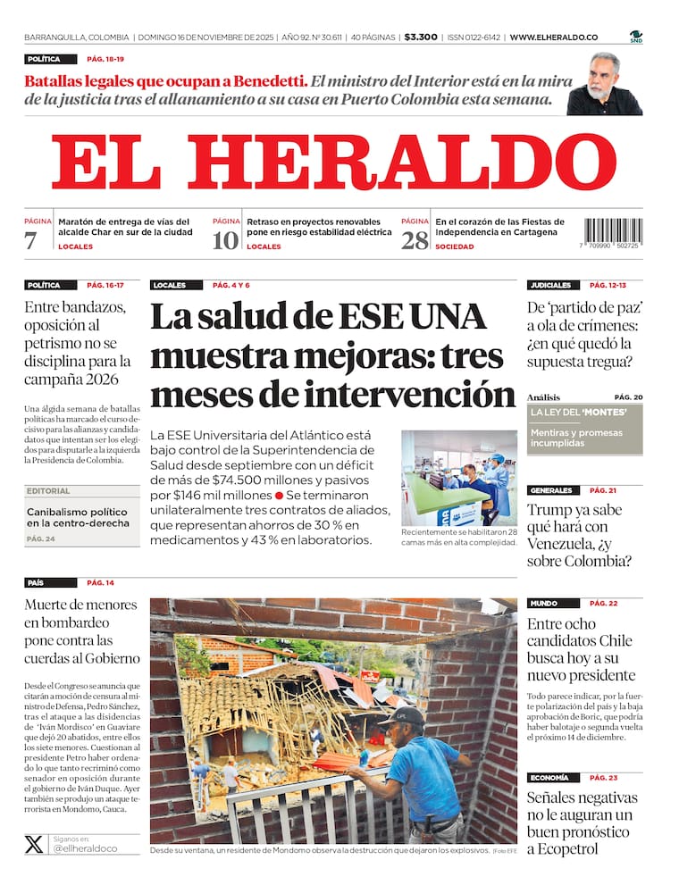 ContáctenosEdición impresa del domingo 16 de noviembre de 2025.