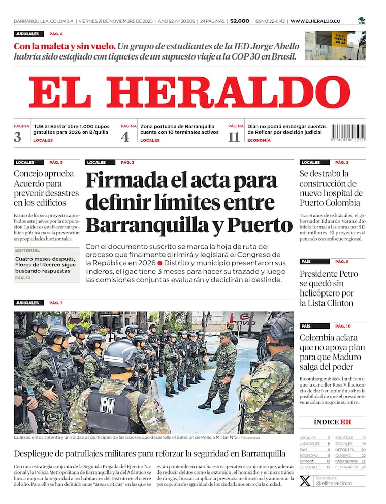 ContáctenosEdición impresa del viernes 21 de noviembre de 2025.