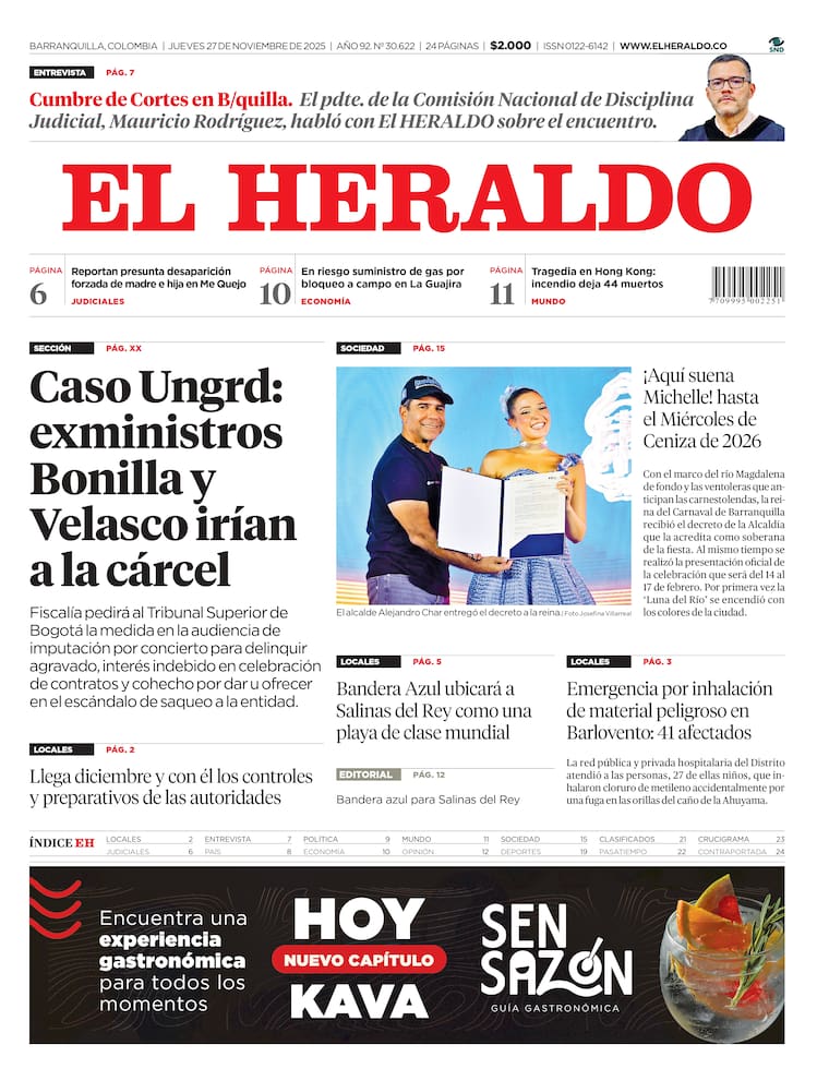 ContáctenosEdición impresa del jueves 27 de noviembre de 2025.