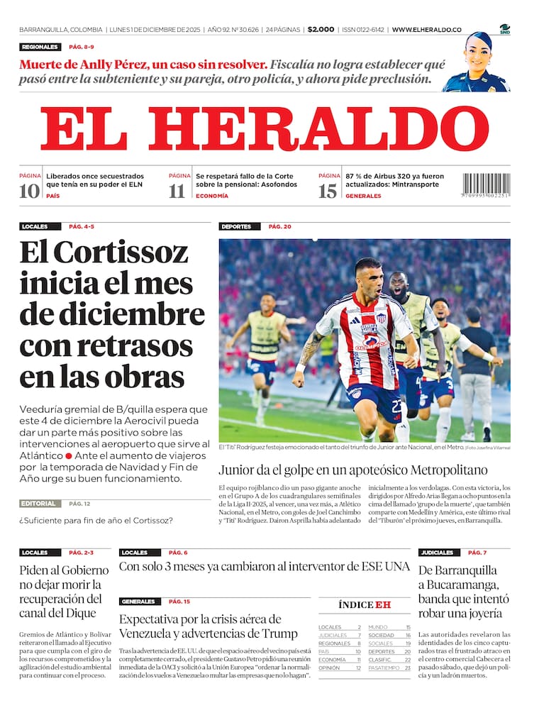 ElHeraldocoEdición impresa del lunes 1 de diciembre de 2025.