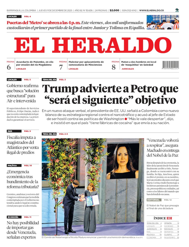 ContáctenosPortada y contraportada del jueves 11 de diciembre de 2025.