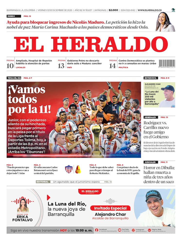 ContáctenosPortada y contraportada de EL HERALDO del viernes 12 de diciembre de 2025.
