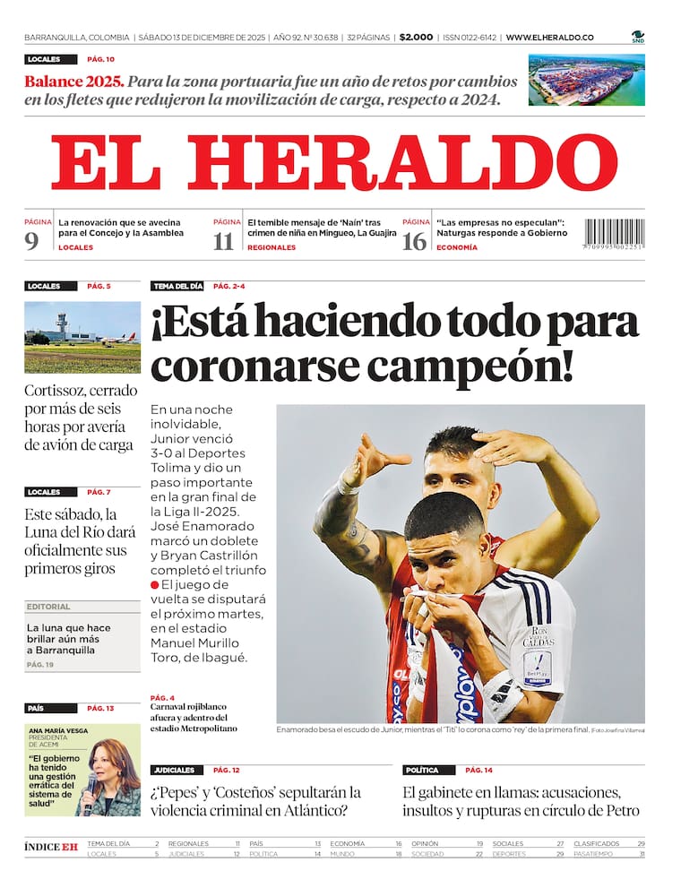 ContáctenosPortada y contraportada del sábado 13 de diciembre de 2025.