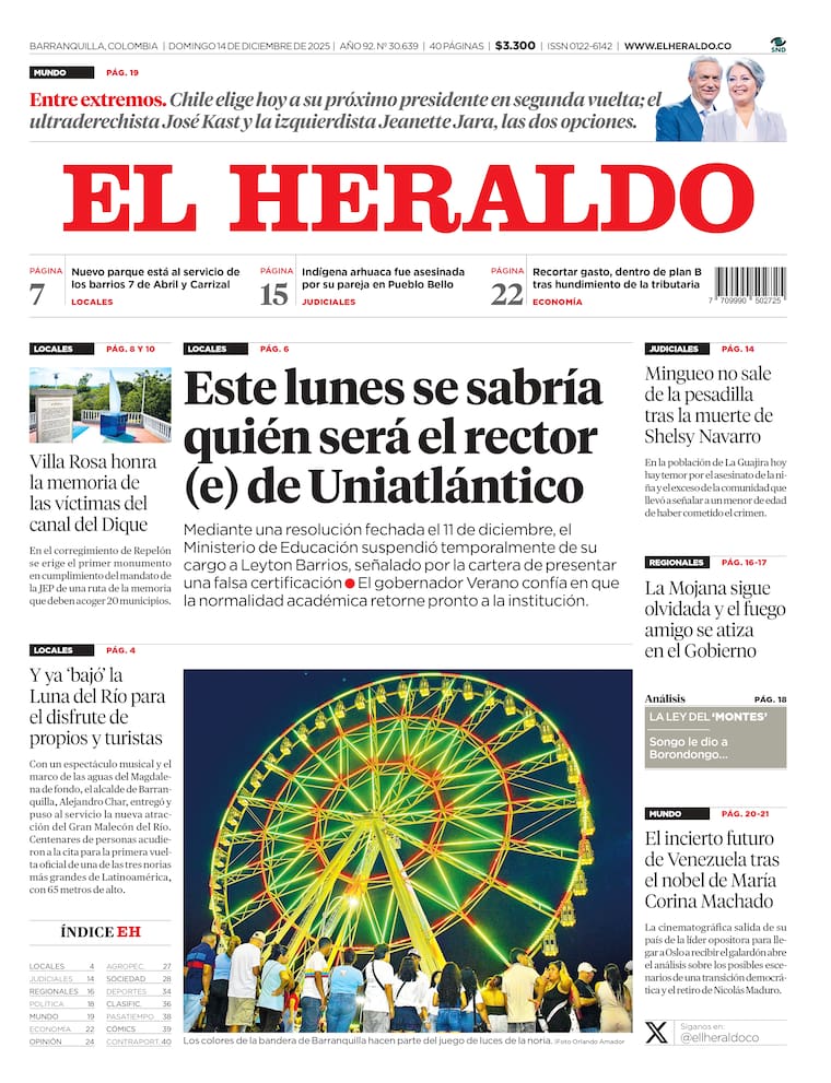 ContáctenosEdición impresa del domingo 14 de diciembre de 2025.
