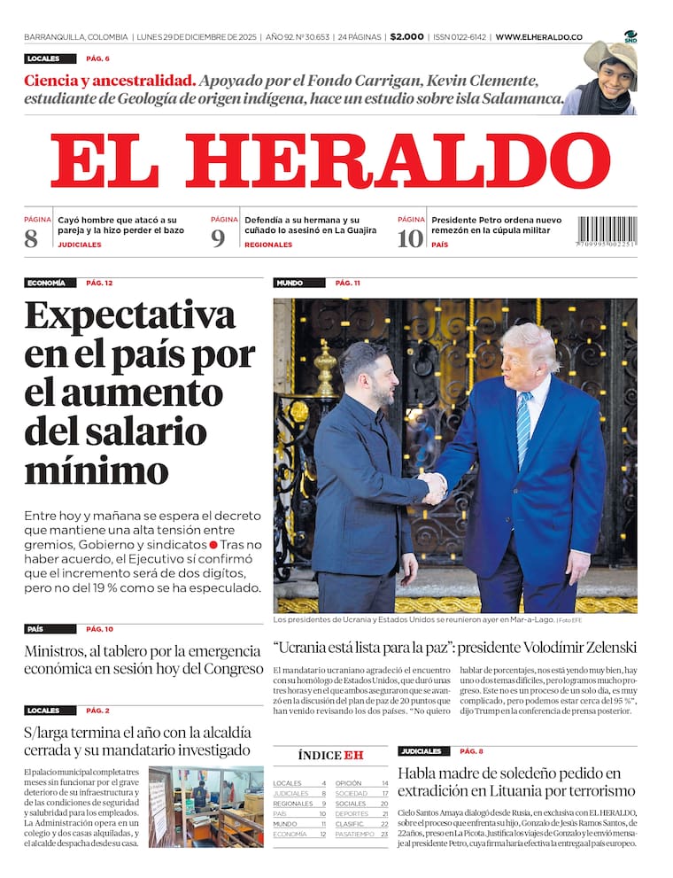 ContáctenosEdición impresa del lunes 29 de diciembre de 2025.