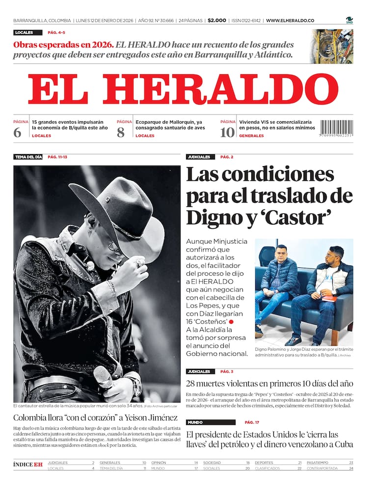 ContáctenosEdición impresa del lunes 12 de enero de 2026.