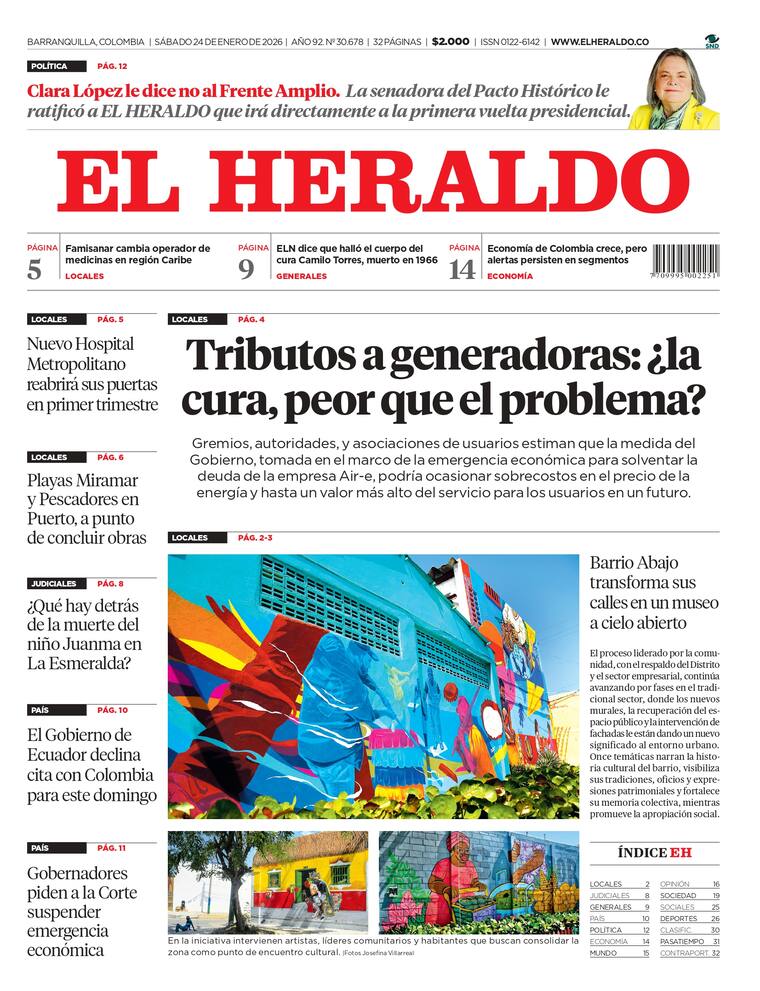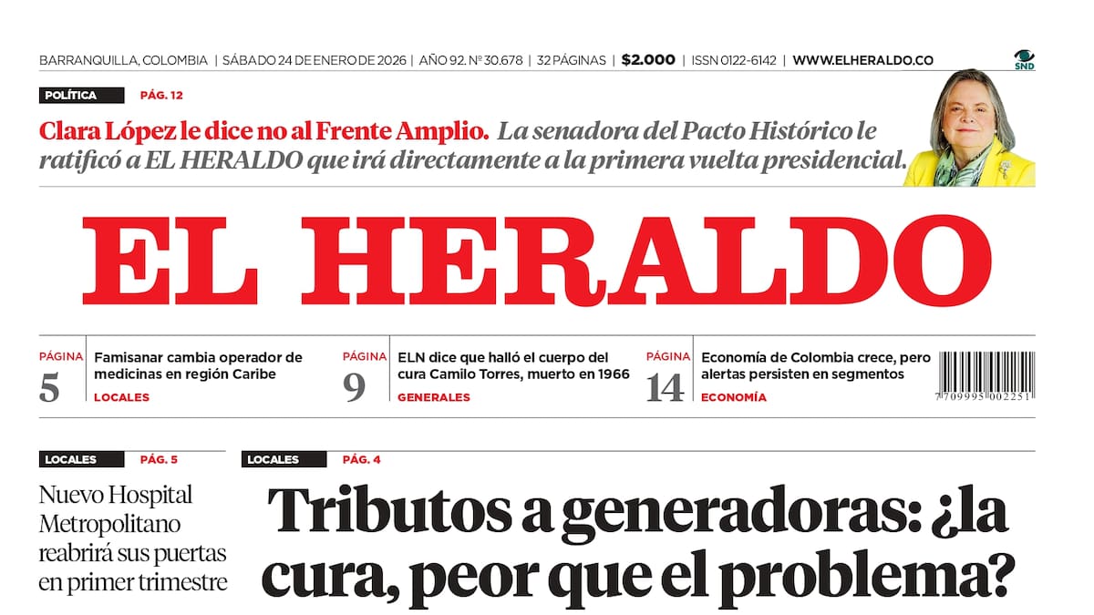 ContáctenosPortada y contraportada de EL HERALDO del sábado 24 de enero de 2026.